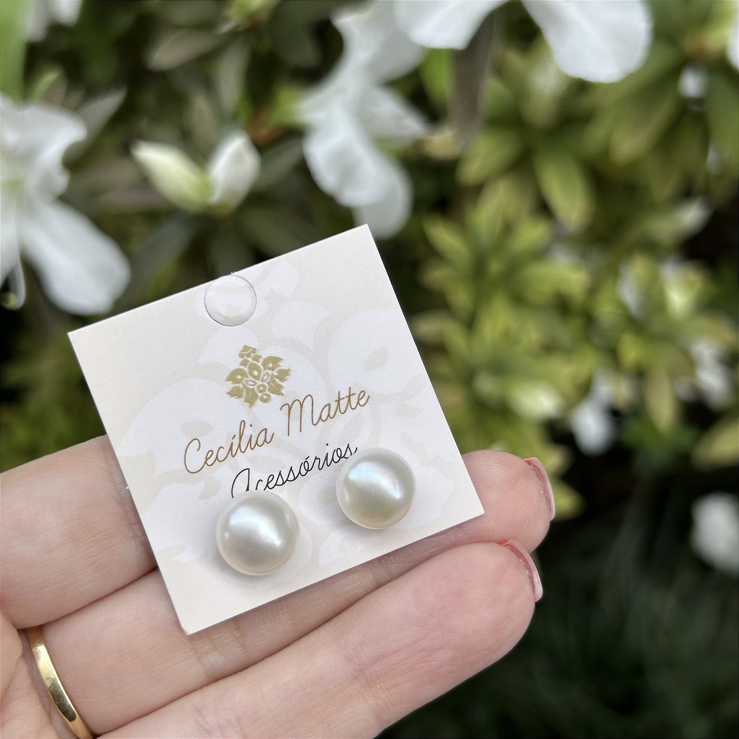 Brinco pérola natural branca 9mm grudadinho na orelha com pino e tarracha folheados a ouro