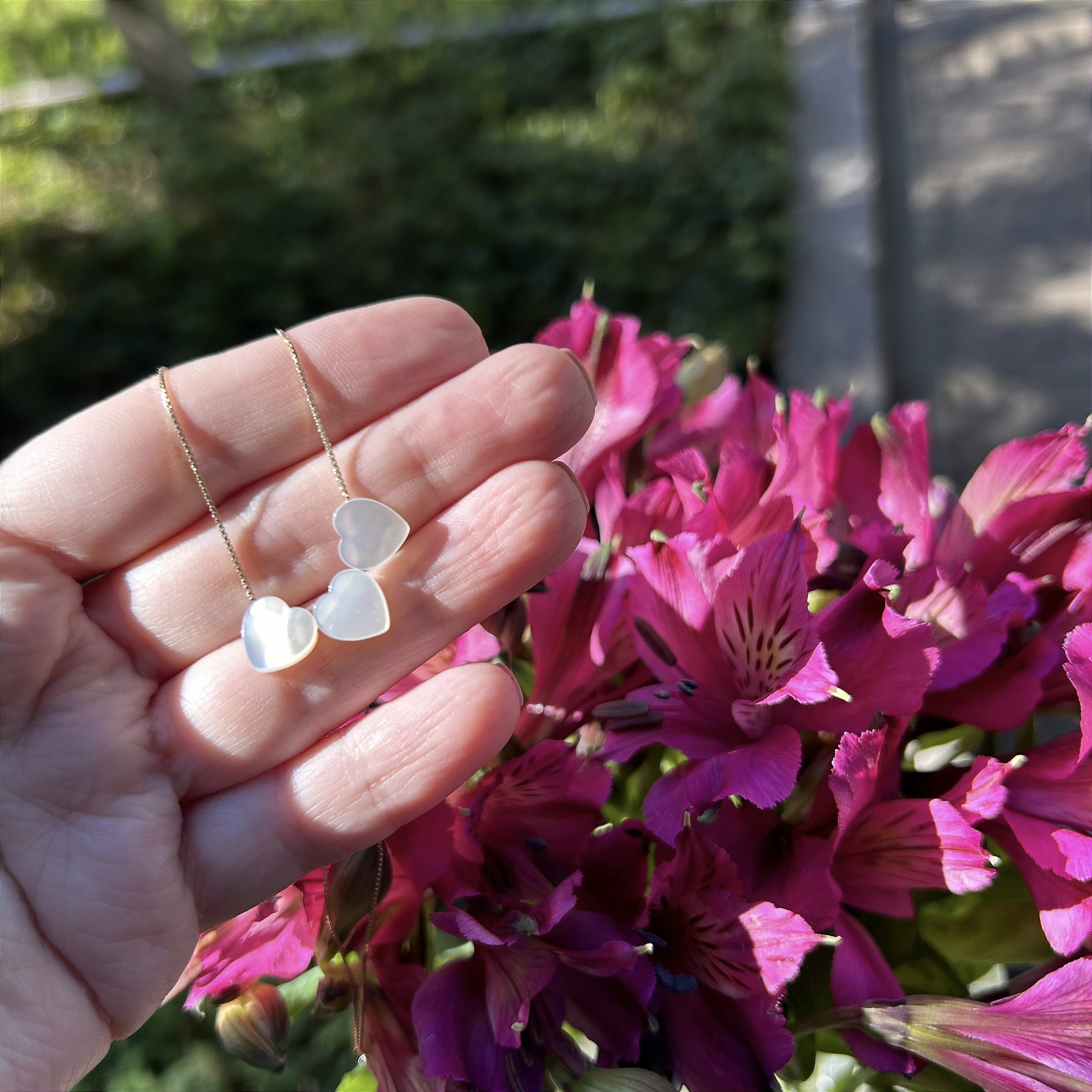 Colar folheado a ouro com 45 cm de comprimento com 3 coracoes de 9mm. Com estensor