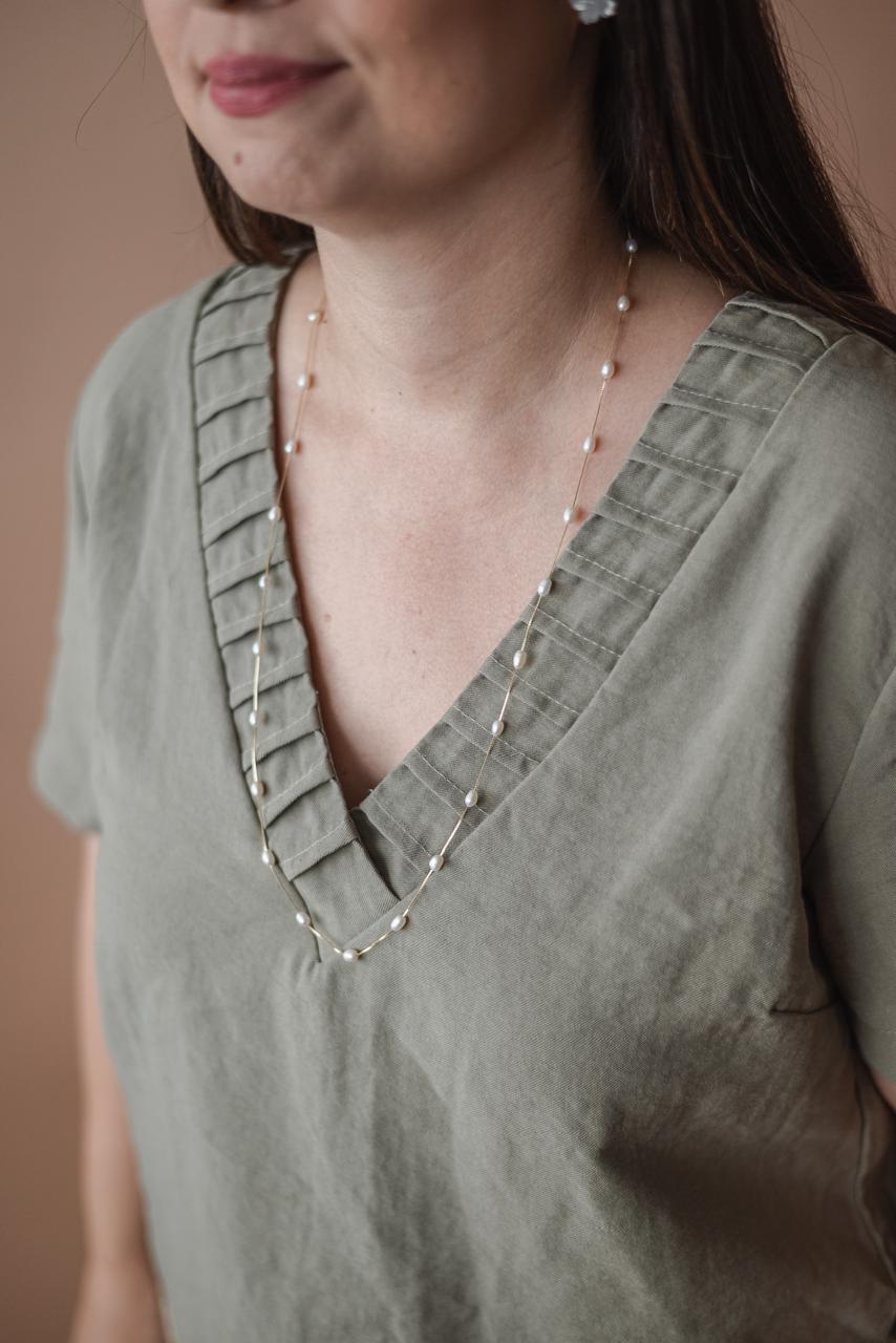 Colar folheado a ouro longo 70 cm com pérolas naturais arroz 5mm
